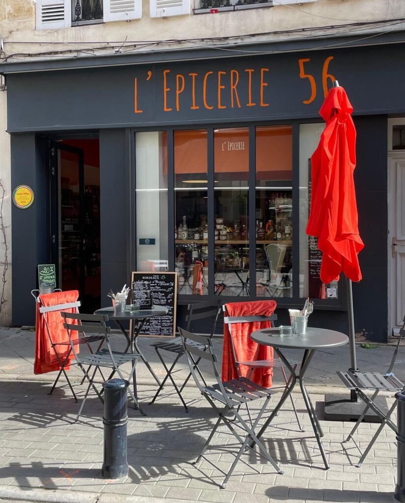 Au détour de la rue du Palais Gallien, un coin de bois et de soleil invite à la détente : la terrasse de L’Épicerie 56.